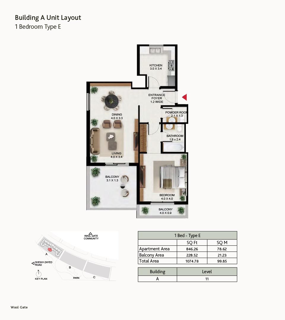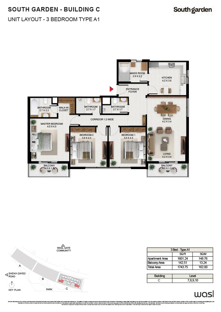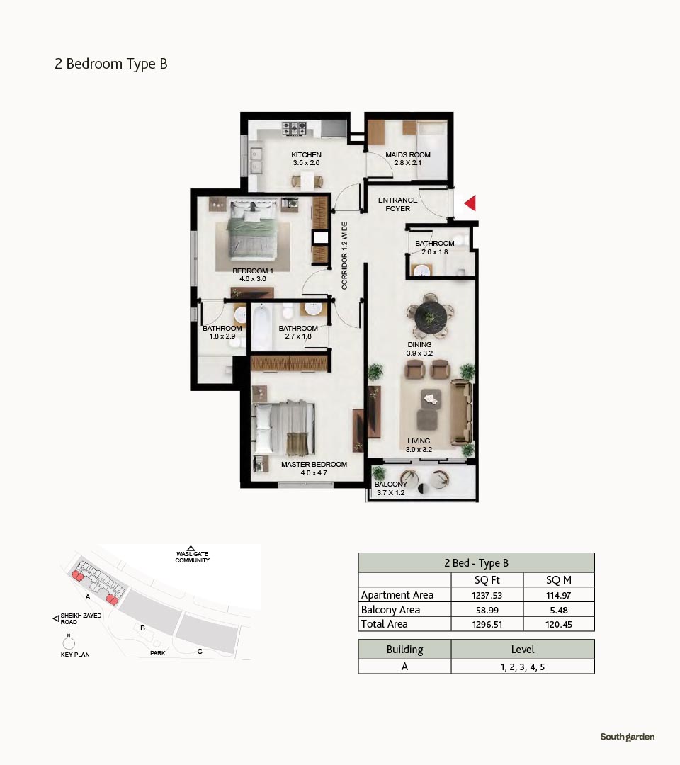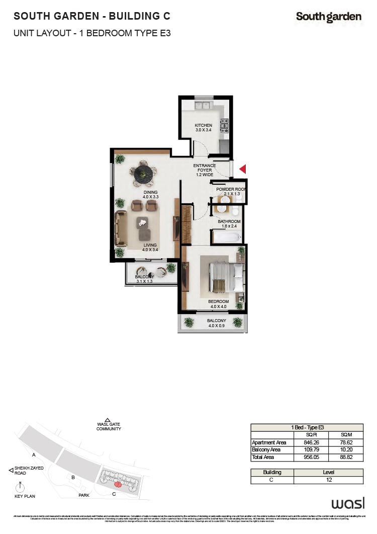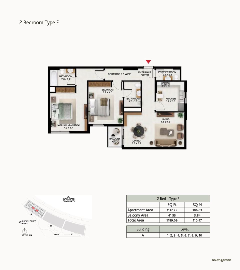 South Garden at Wasl Gate is a refined and massive development, offering floor plans of carefully constructed lavish studios, 1, 2 and 3-bedroom apartments. There are 3 buildings encompassing the refined interiors, including the stunning neutral theme of spacious layouts, rich furnishings and fully-curated sustainable rooms with large windows and sun-lit spaces. All rooms are featuring the porcelain flooring, paint finish on walls and false ceiling with moisture-resistant paint.