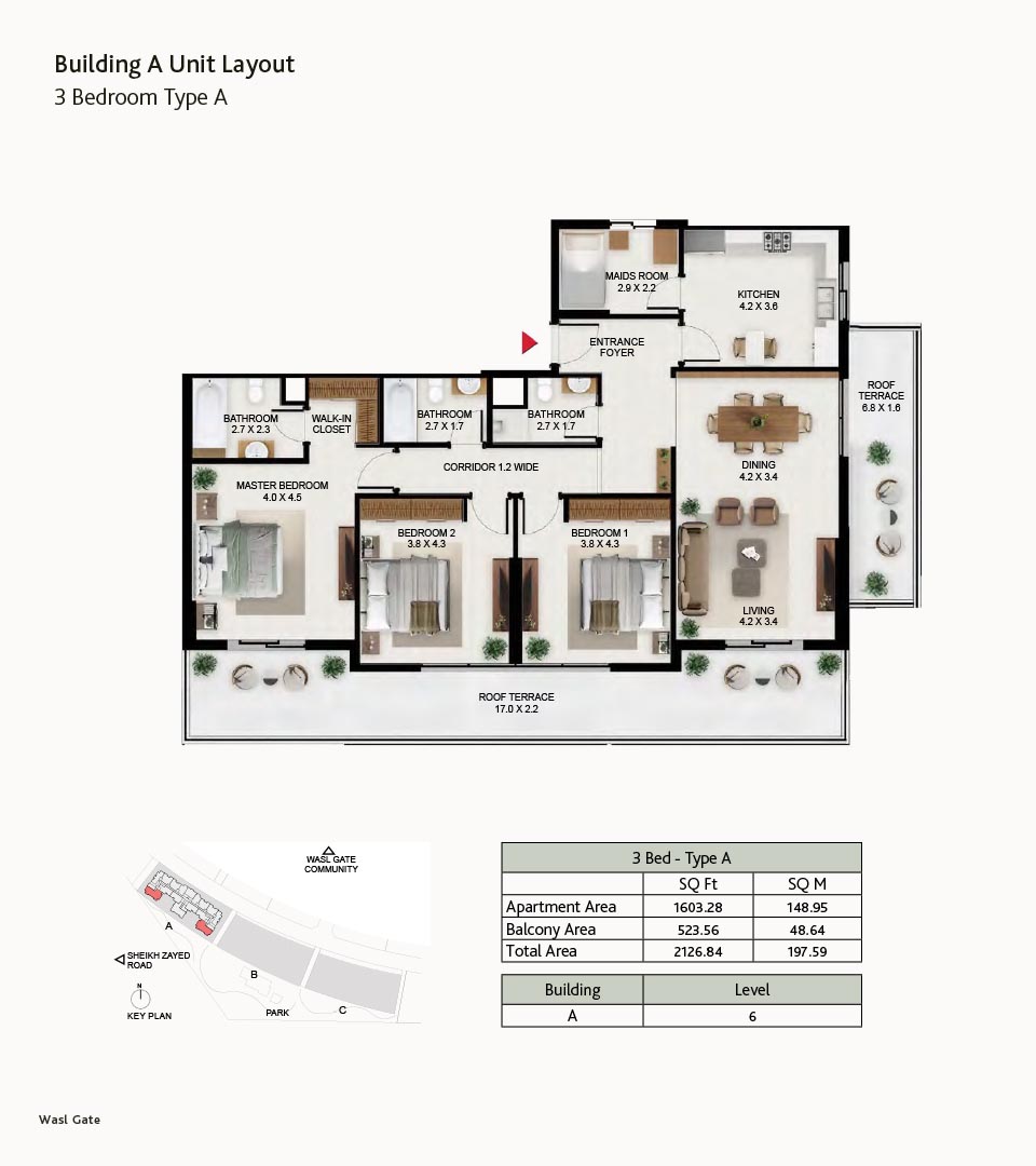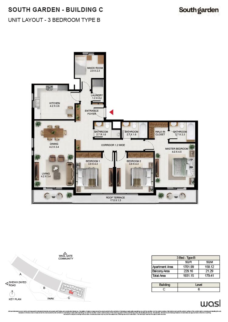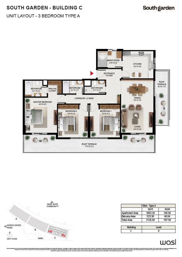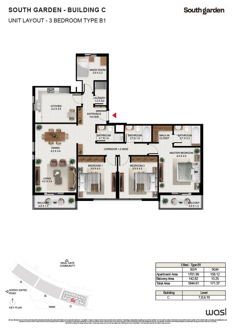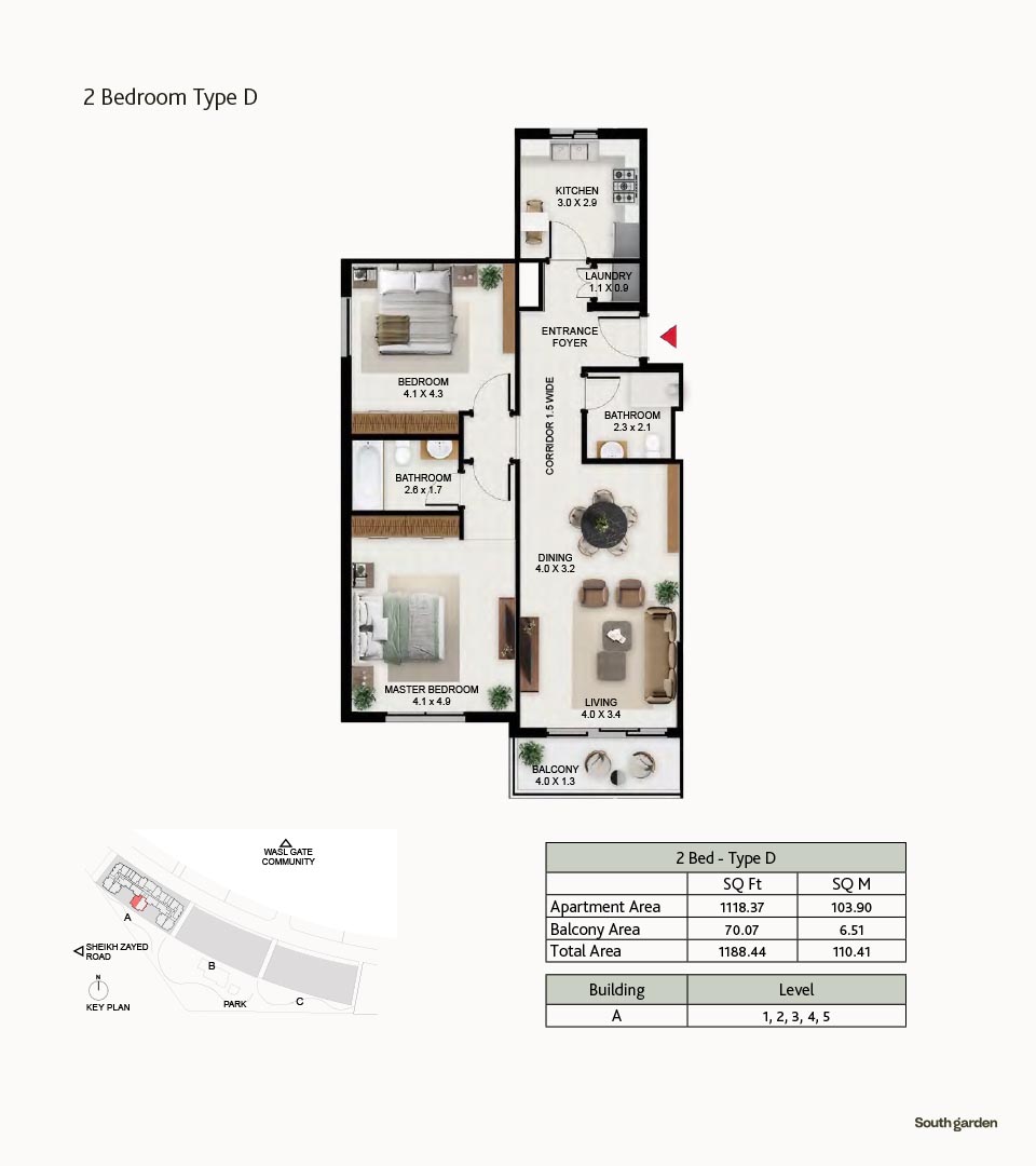 South Garden at Wasl Gate is a refined and massive development, offering floor plans of carefully constructed lavish studios, 1, 2 and 3-bedroom apartments. There are 3 buildings encompassing the refined interiors, including the stunning neutral theme of spacious layouts, rich furnishings and fully-curated sustainable rooms with large windows and sun-lit spaces. All rooms are featuring the porcelain flooring, paint finish on walls and false ceiling with moisture-resistant paint.