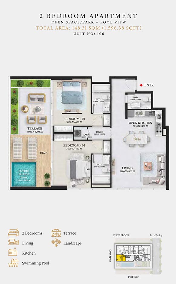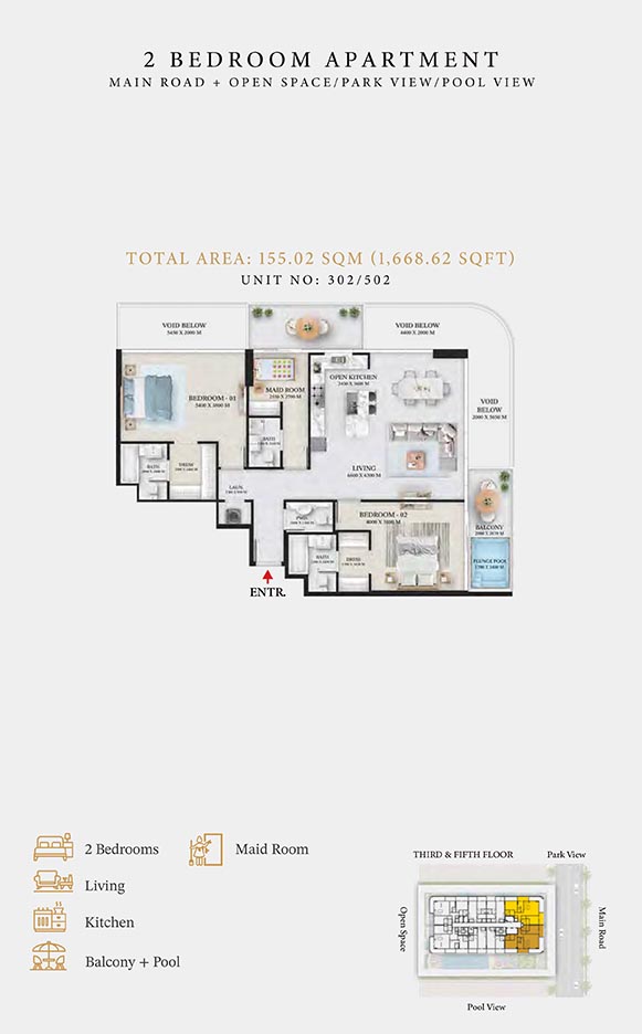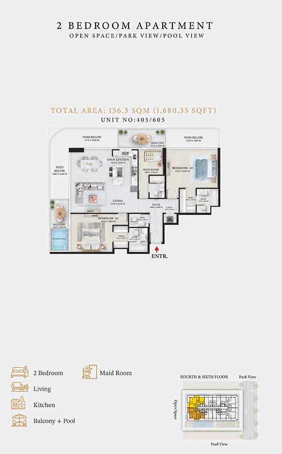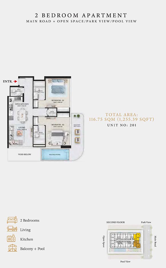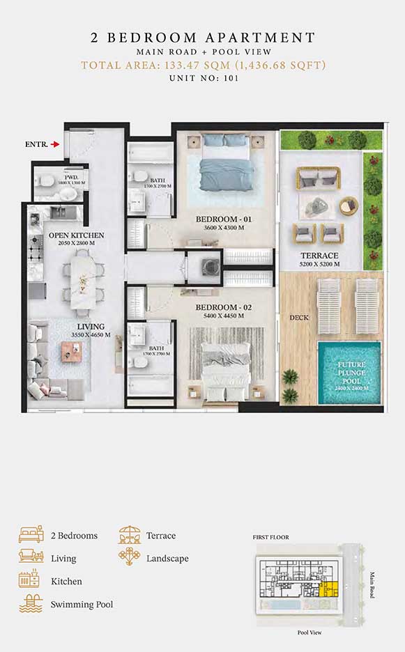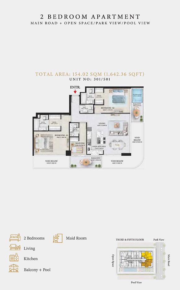 Wellington Ocean is a 6-storey opulent piece of contemporary residential architecture, with dynamic floor plans of 1 to 3-bedroom apartments & duplexes. In this exquisite low-rise address, you will have a choice of residences with or without pool and a grand duplex with personal jacuzzi. The ample storage with neutral layouts, quality furnishings, grand ceilings and windows of the same height create an inviting ambience full of comfort and style grounded in nature. Each unit is composed of open-plan layouts, fully equipped smart kitchen, plush bathrooms with expensive lighting and calm theme, quality elements & fittings.