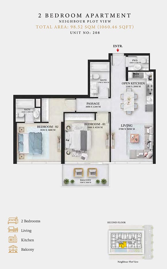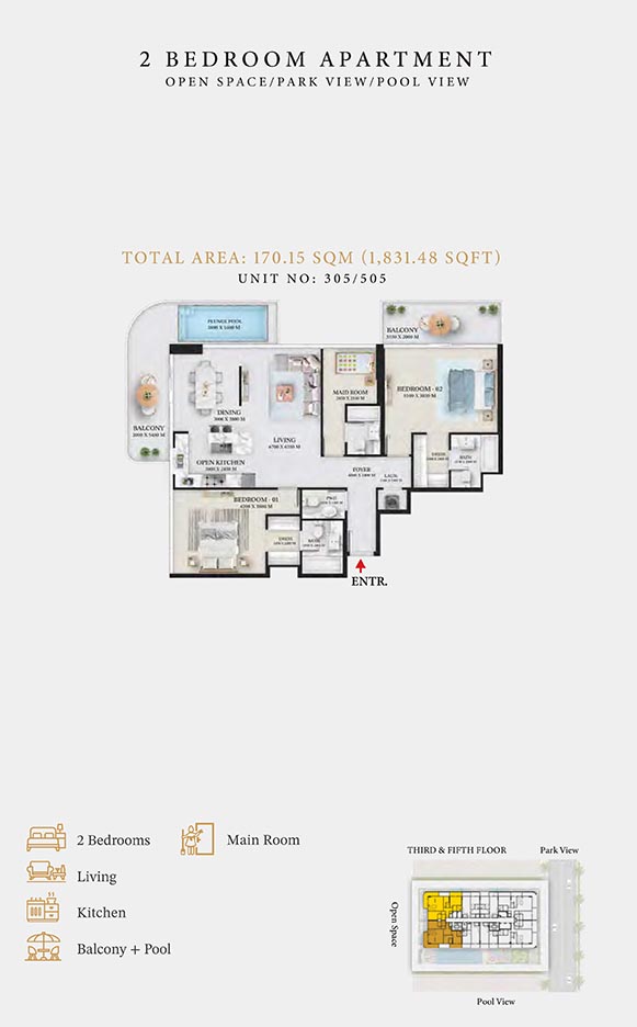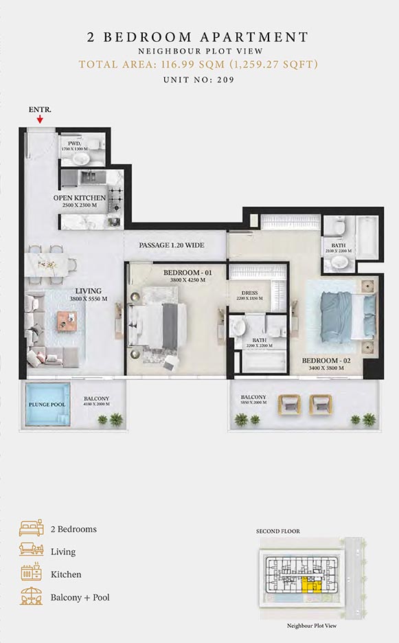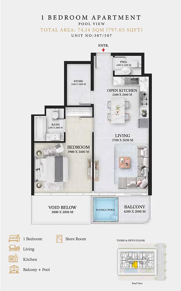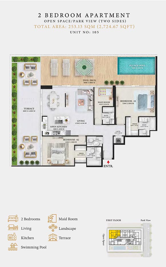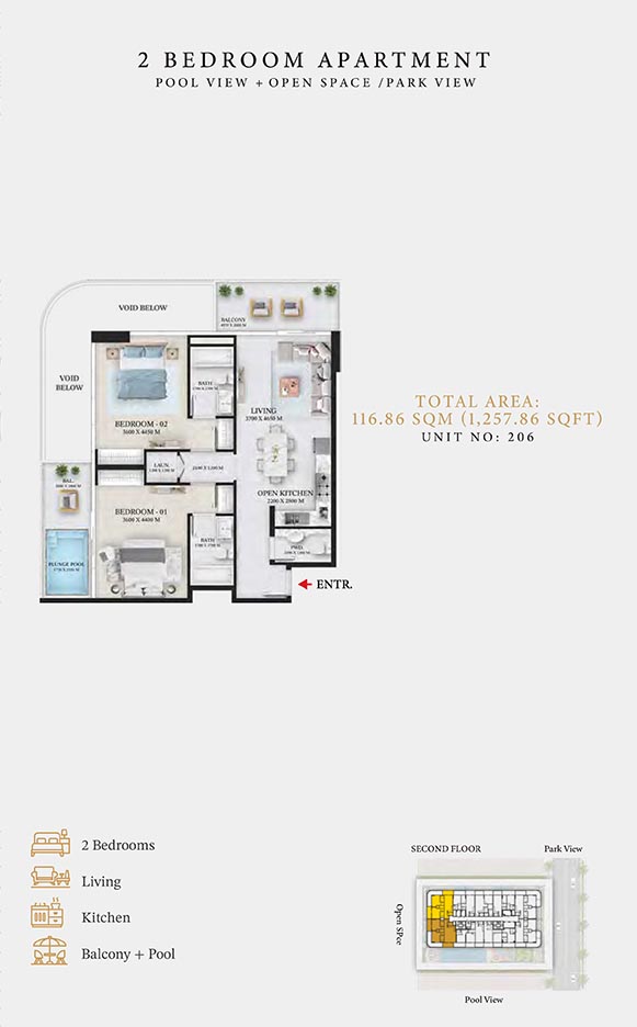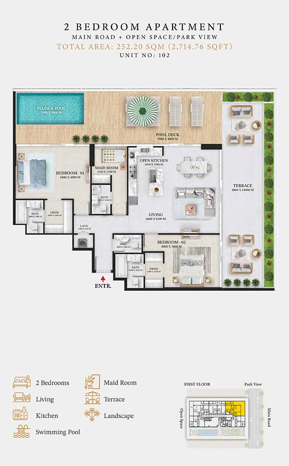 Wellington Ocean is a 6-storey opulent piece of contemporary residential architecture, with dynamic floor plans of 1 to 3-bedroom apartments & duplexes. In this exquisite low-rise address, you will have a choice of residences with or without pool and a grand duplex with personal jacuzzi. The ample storage with neutral layouts, quality furnishings, grand ceilings and windows of the same height create an inviting ambience full of comfort and style grounded in nature. Each unit is composed of open-plan layouts, fully equipped smart kitchen, plush bathrooms with expensive lighting and calm theme, quality elements & fittings.