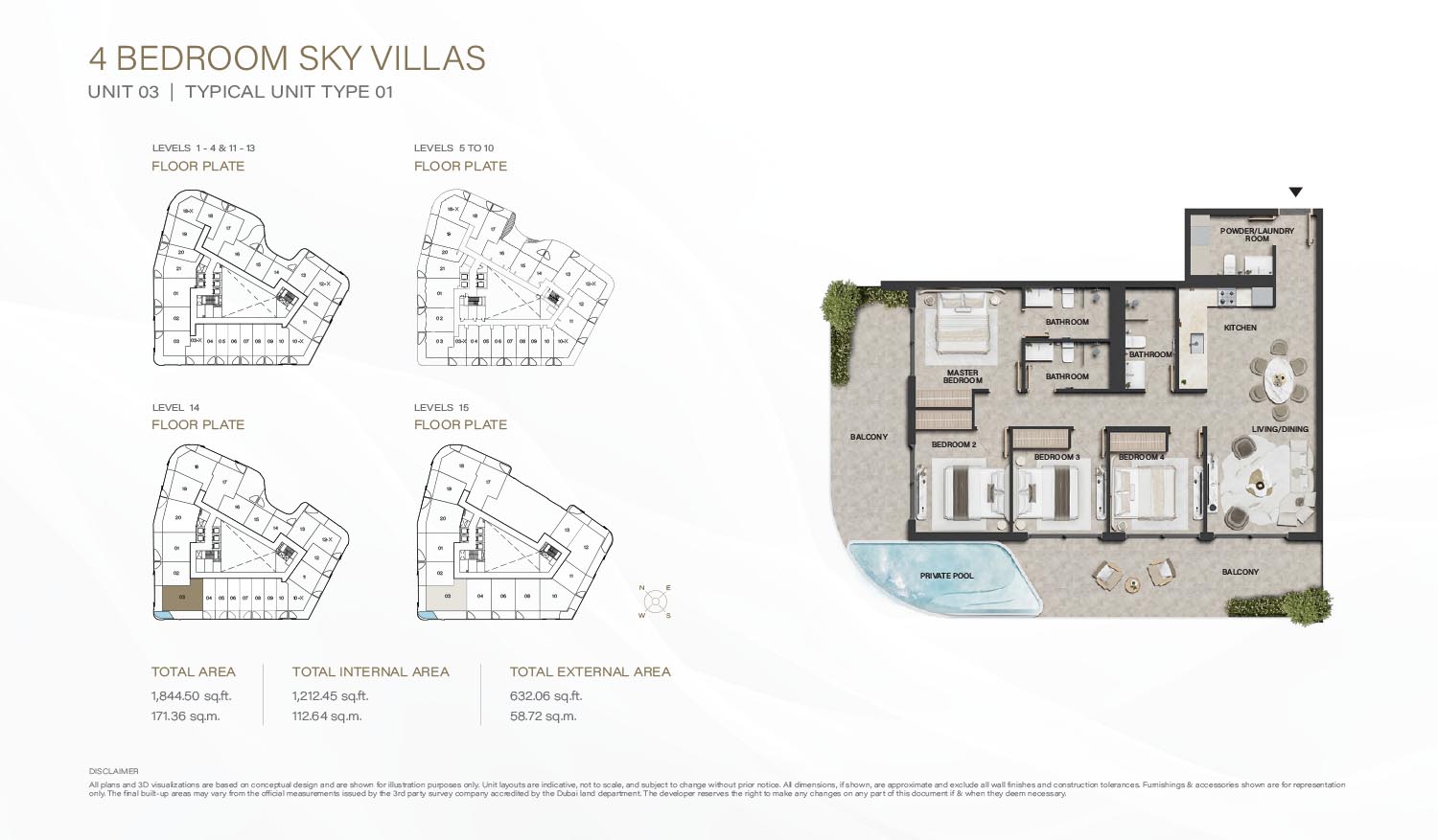 Introducing the Weybridge Gardens Phase 4, a bespoke residential icon with carefully crafted floor plans of studios and 1 to 4-bedroom apartments & sky villas. This mid-rise complex reveals a unique range of spacious homes tailored to the modern day’s needs and choices of the residents. Here, each home unit comes with elegant and furnished layouts, while the smart technologies, and British-inspired enticing interiors. All the 294 studios to grand four-bedroom homes come with a private pool on the spacious terrace.