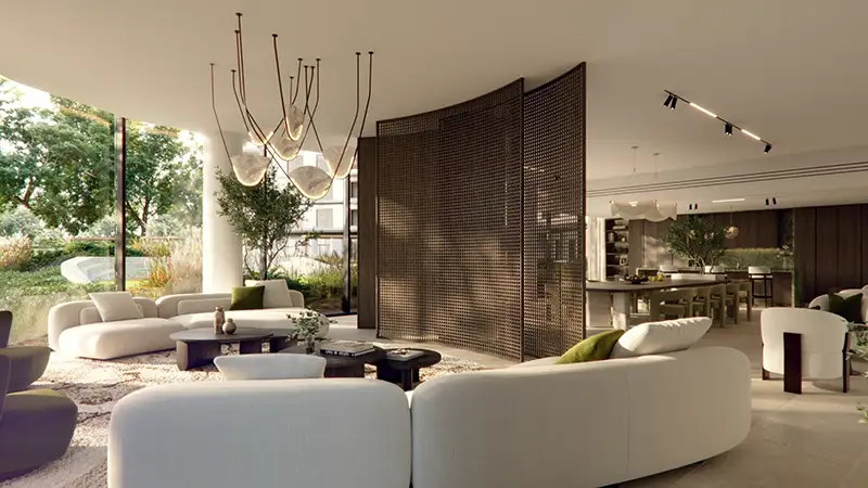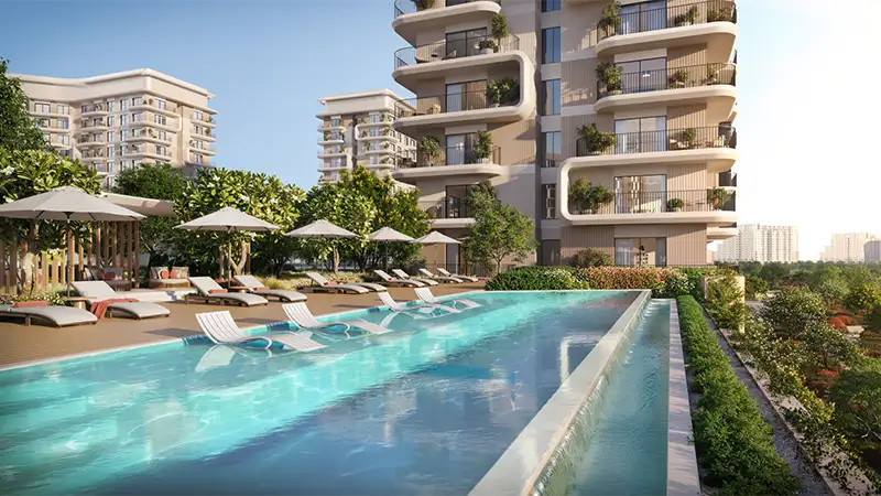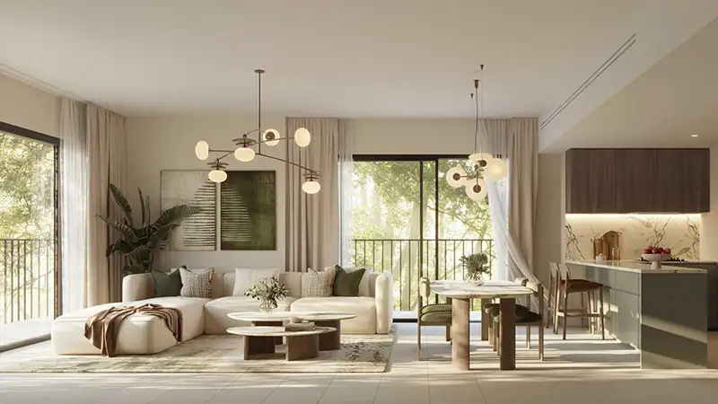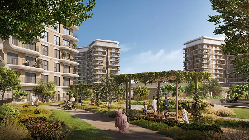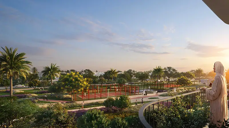 In Yas Park Place, the master plan is developed based on the premise of an open and connected live. The residential clusters are carefully positioned to landscape courtyards and large parkland so that they offer an unhindered view and more privacy. The key green spines in the center link houses to leisure facilities, running setups, bicycles and shaded relaxation spaces that ensure exercise and outdoor activities. There is location of community facilities at walking distance, which supports a lifestyle that is based on walking. The traffic is subtly arranged along the boundary, which leaves the inner space calm. Waterfront edge is well incorporated in the planning idea, as it provides residents with an easy access to scenic proms and leisure areas.