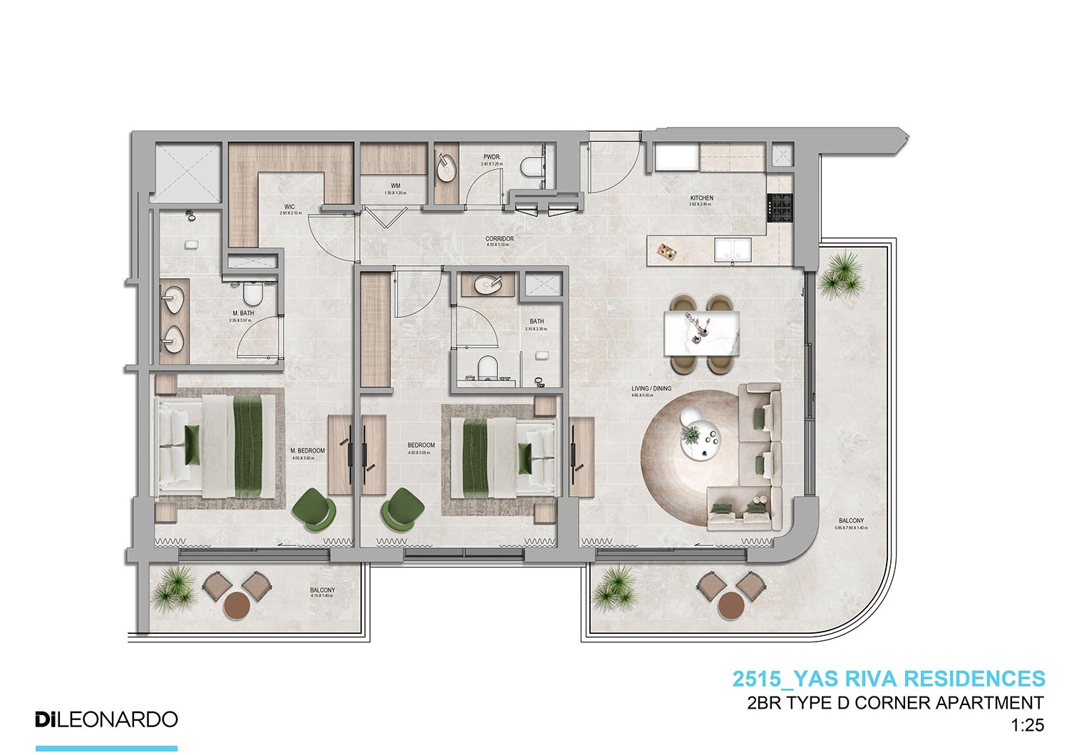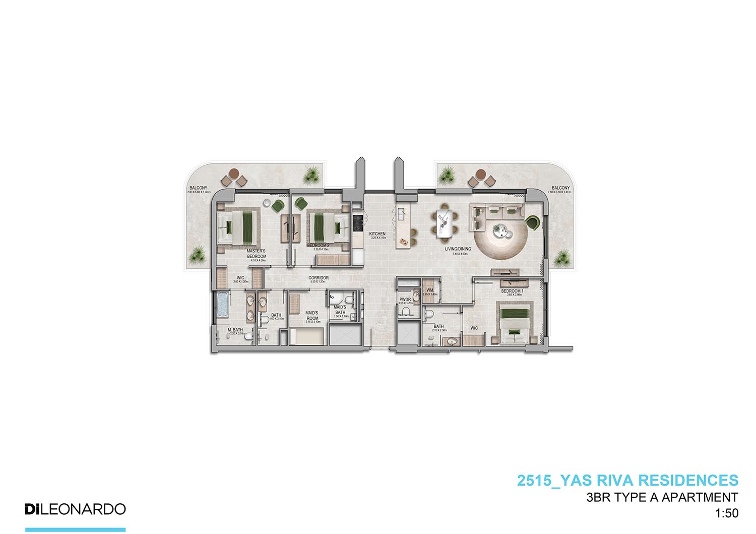 Yas Riva Residences boasts of an array of thoughtfully designed floor plans of 1, 2 and 3-bedroom apartments that are efficiently planned for comfort. The layouts are well resonant in increasing the openness, as the large windows oriented to the canal look, and the soft daylight penetrating into the living spaces. Contemporary kitchens, generous balconies and well proportionate bedrooms are what makes each home to be practical and elegant. Choose units have the advantage of personal pools, and multi-purpose flexible pods can be customized either into work, fitness or a creative space. The plans incorporate flexibility and smooth functionality with elegant designs that provide residents with flexible living spaces which is reflective of the modern ways of life.