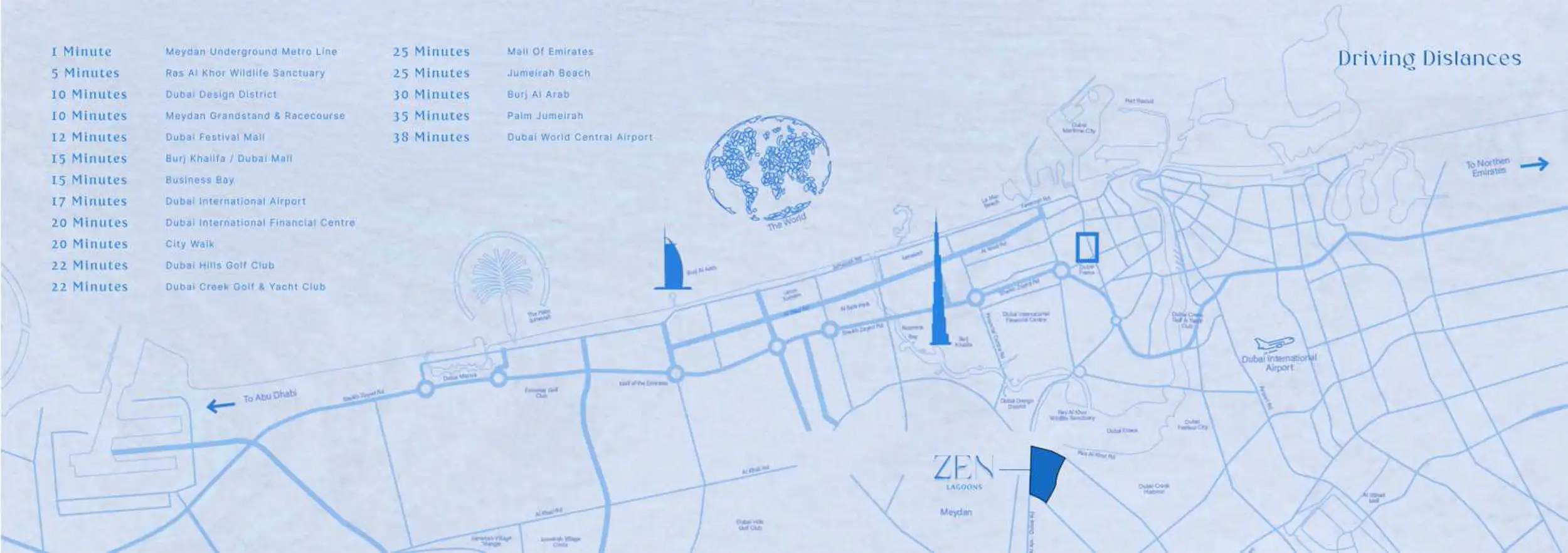 Zen Lagoons at Meydan Horizon is a resort-zen inspired development by Zennova Realty and Sanzen Developments featuring premium and exclusive class 1, 2 & 3-bedroom apartments in Dubai. The high-rise G+4P+23 floors sophisticated residential destination will combine modern constructions, lined with serene landscapes, and high-class urban living to provide them with a smooth living experience. The project is created in accordance to the idea of the harmonic state and serenity, which brings a lagoon-themed atmosphere to one of the most forward-looking residential areas in Dubai. Through the initial visual impression, it creates an impression of casual luxury, as the exquisite design lines, manicured the outdoors, and considered homes show a redefinition of the concept of resort living in the current times. The design is developed so that it is the choice of all the discriminating buyers and investors who want a quiet home space but stays to the beat of the sparkling city.