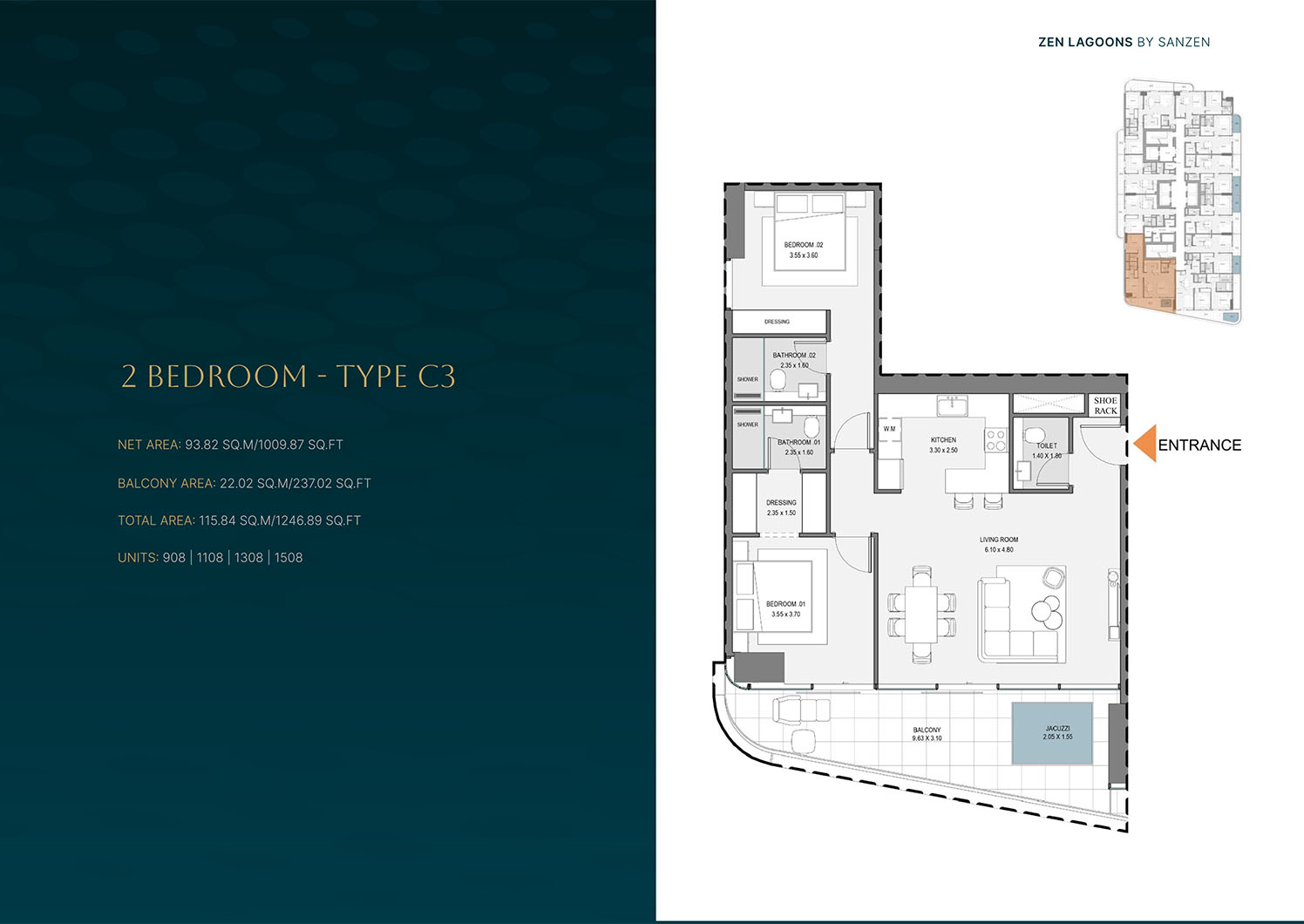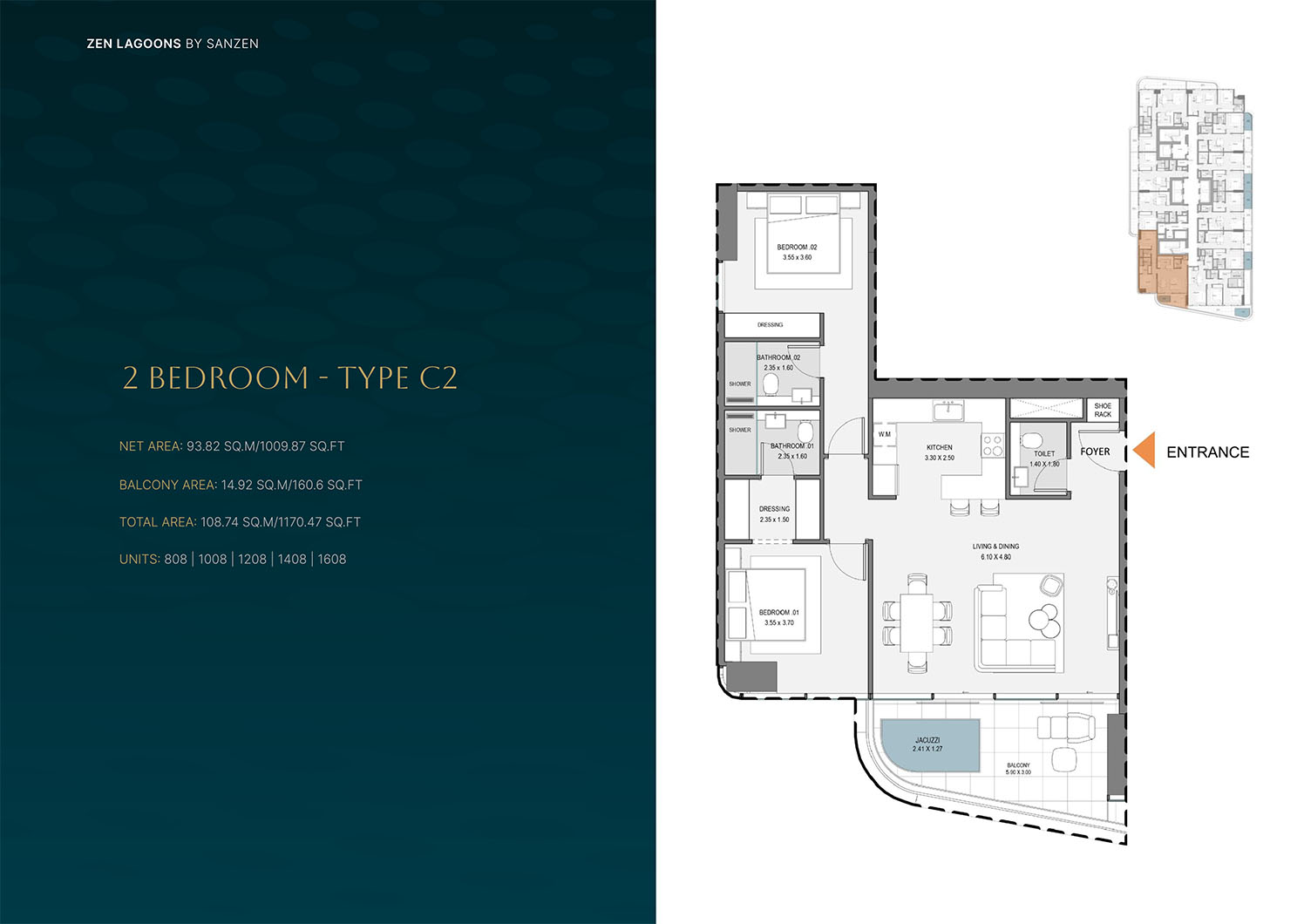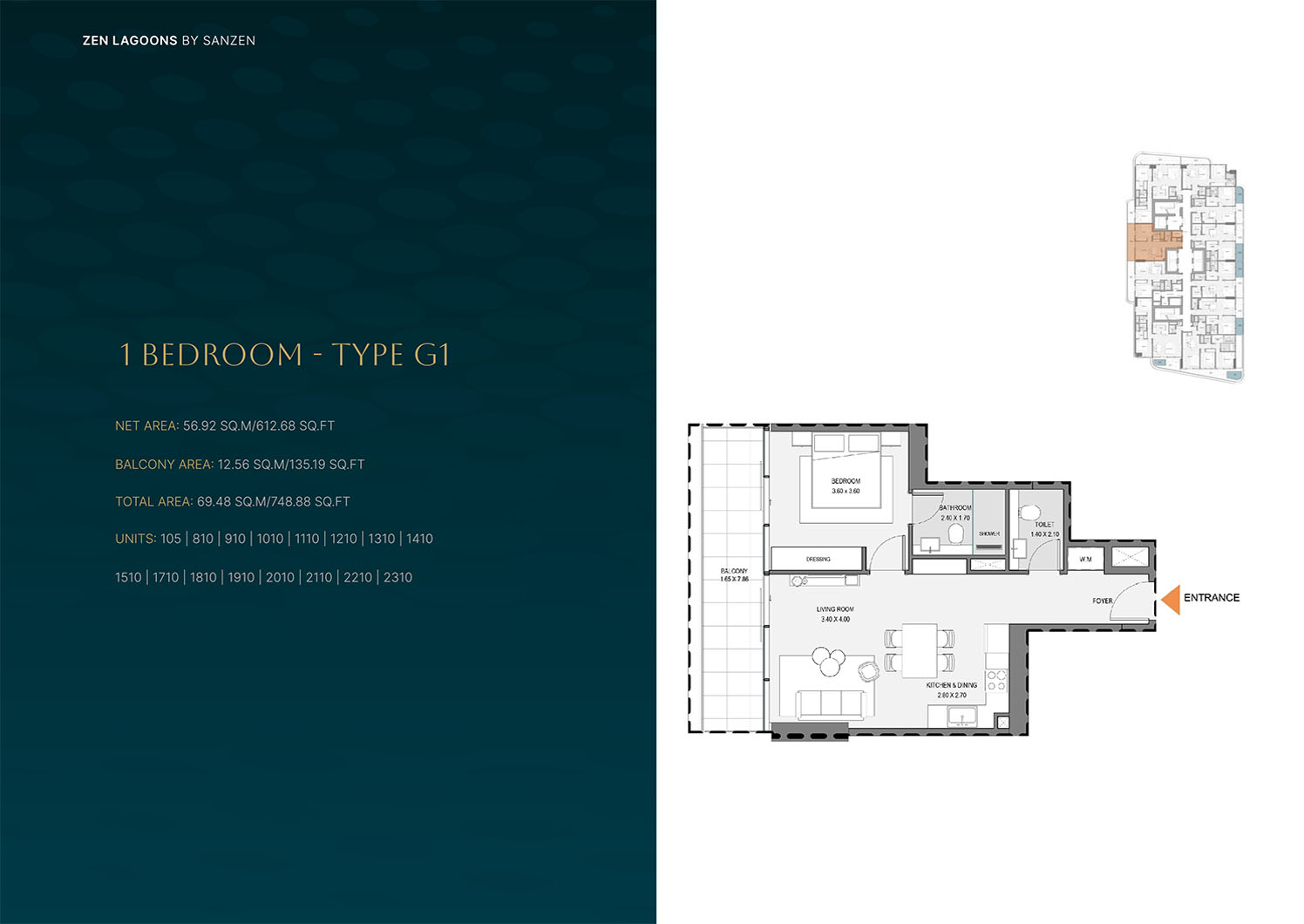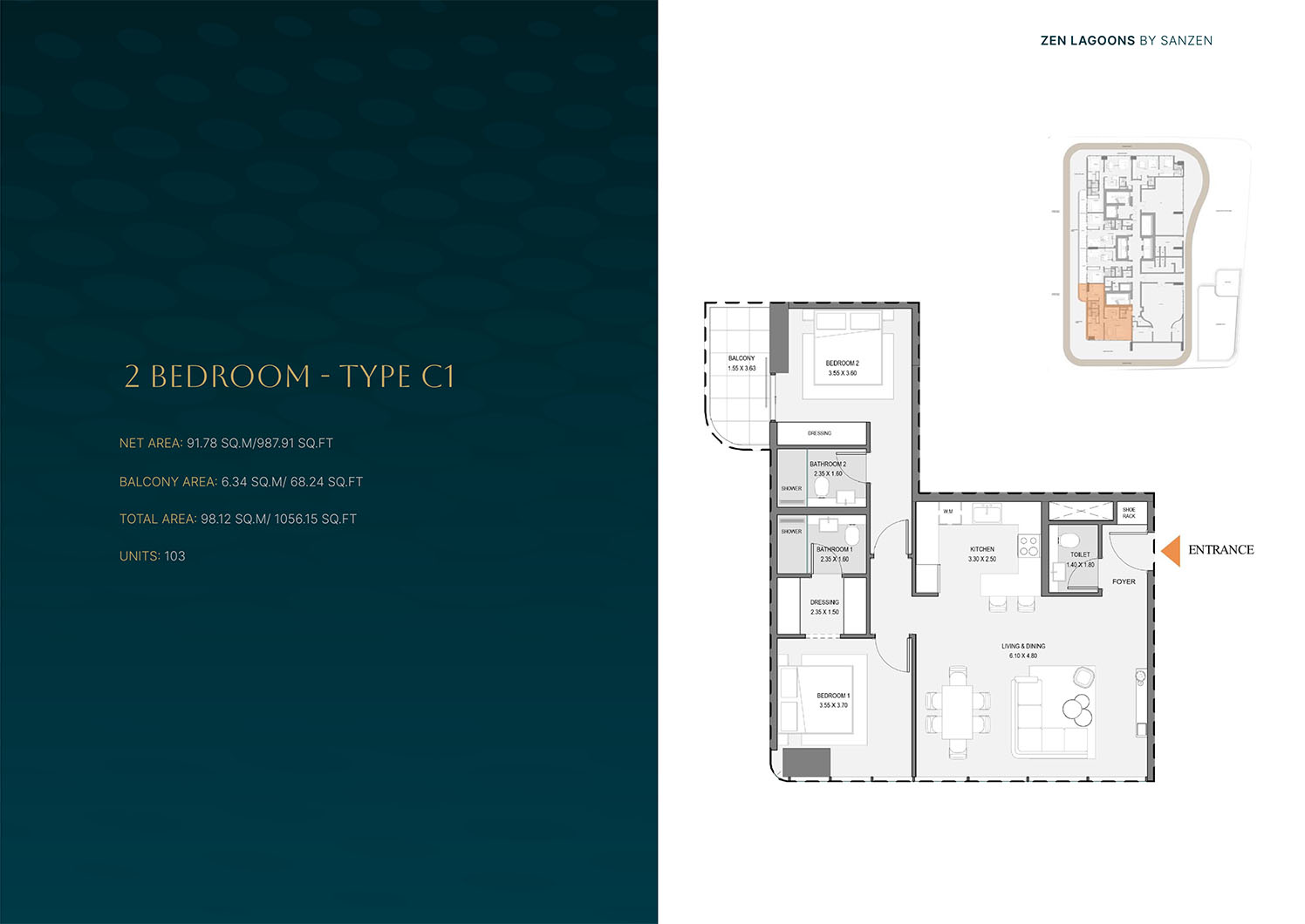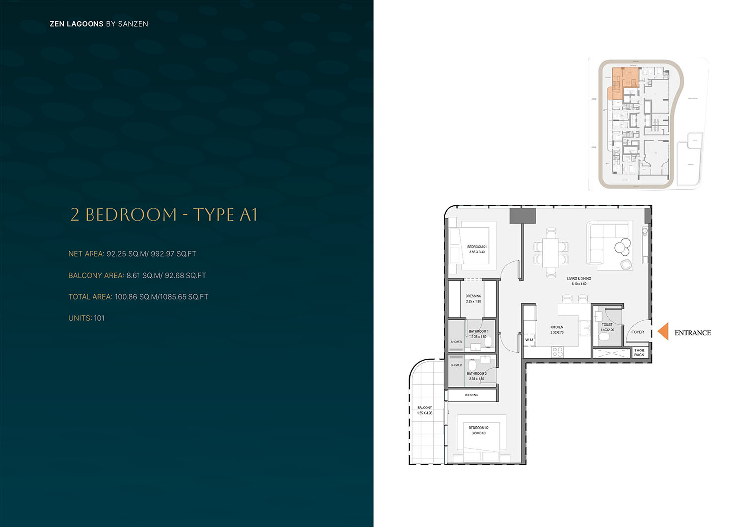 Zen Lagoons present smartly designed floor plans of 1 to 3-bedroom apartments, which dwell on functionality, comfort and space utilization. All homes are planned to maximize space, as well as keeping the atmosphere light and spacious. The main focus of the house is open-plan living and dining spaces, which are balanced with the right proportions of bedrooms and strategically located storage units. Large windows make the natural light more effective and view to landscape around them. The floor plans will embrace the city living styles providing flexibility to the family members, professionals and the investors in search of livable spaces that are practical and at the same time elegant.